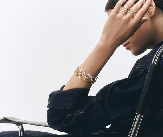 DJULA's emblematic Barbelé collection pushes the boundaries of conventional design to reinterpret the rebellious, intriguing aesthetic of barbed wire, a symbol of strength and protection. Every meticulous detail of the Barbelé collection evokes a distinctive look, transforming its intimidating allure into singular, bold jewelry creations.