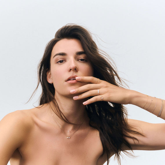 Like a second skin, the finesse of the rings, necklaces, bracelets and earrings from the Magic Touch collection seem to blend delicately with the skin, creating a sensation of lightness and comfort.