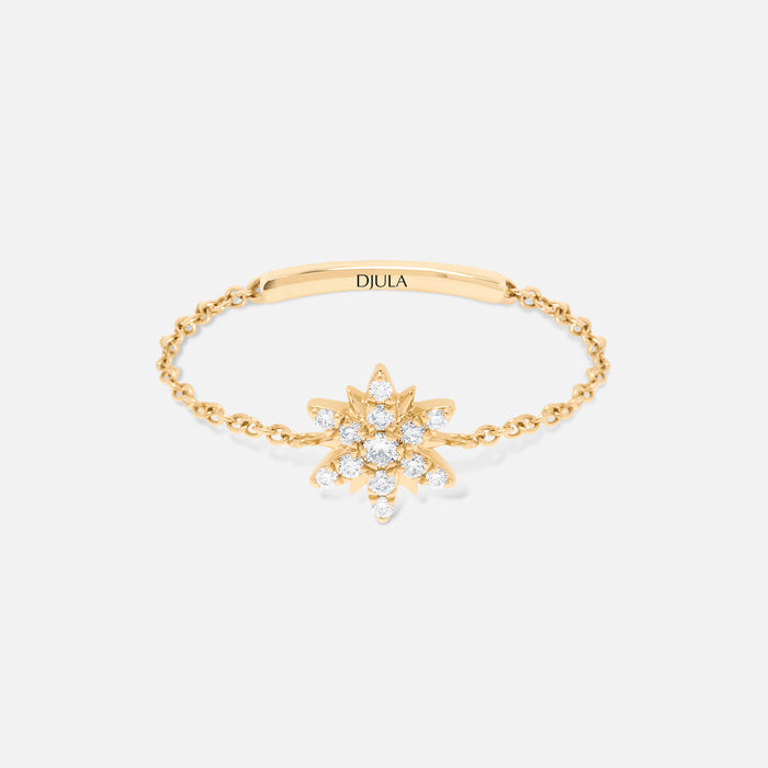 Magic Touch sun chain ring in 750/1000 gold and diamonds.