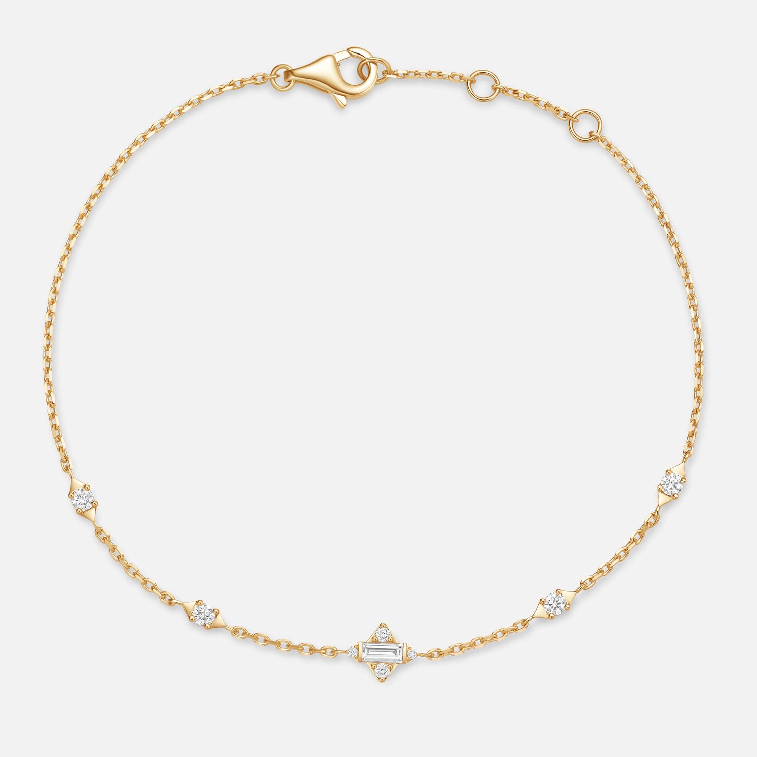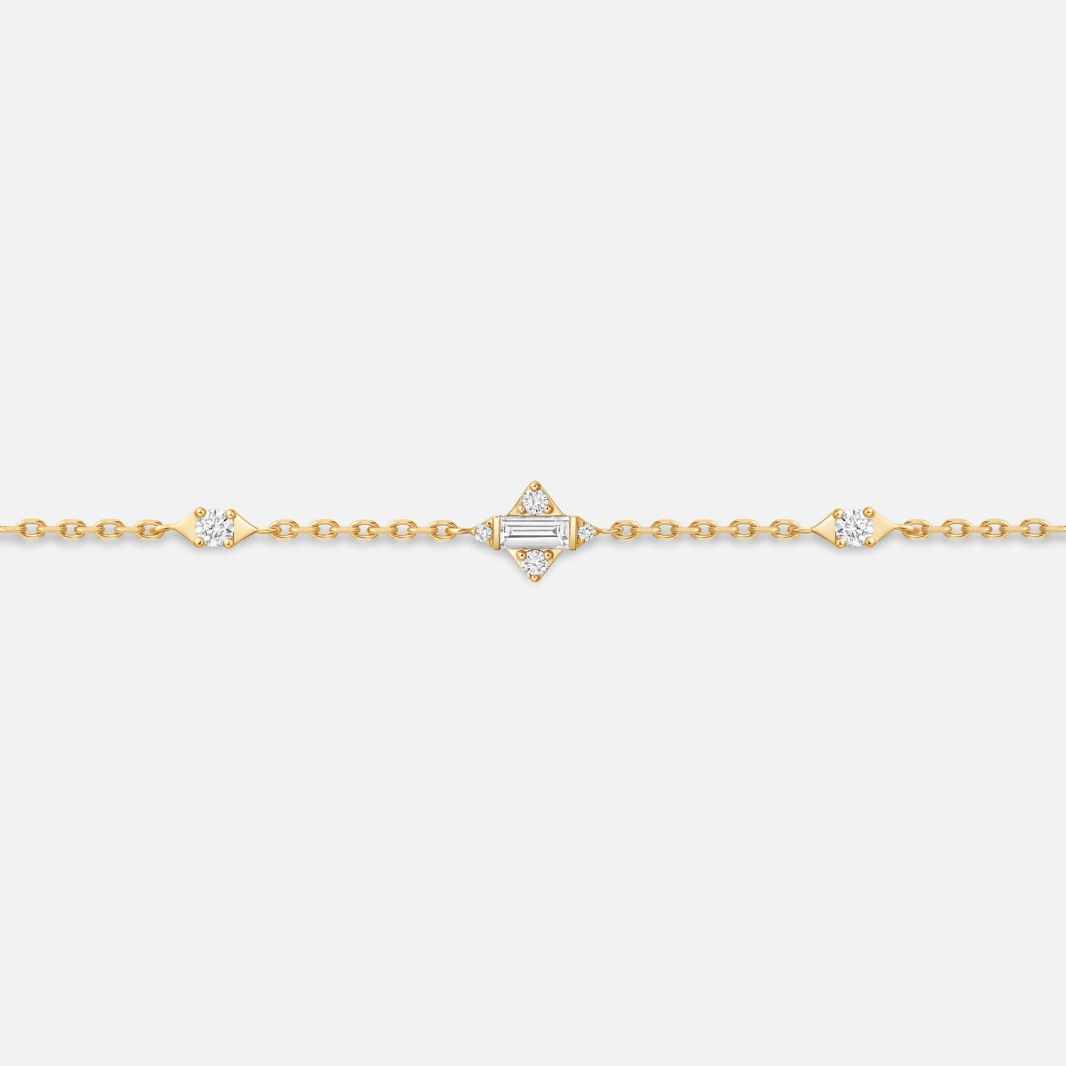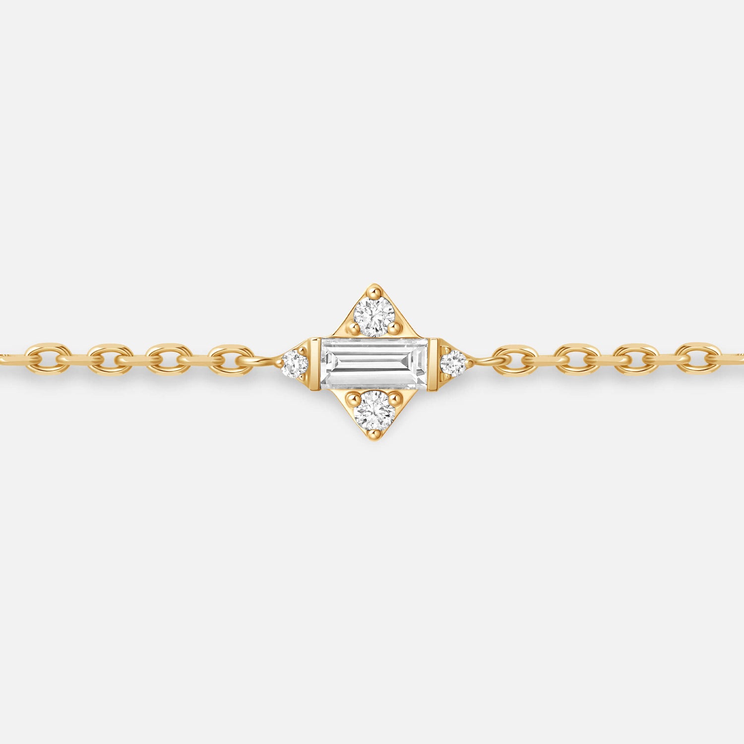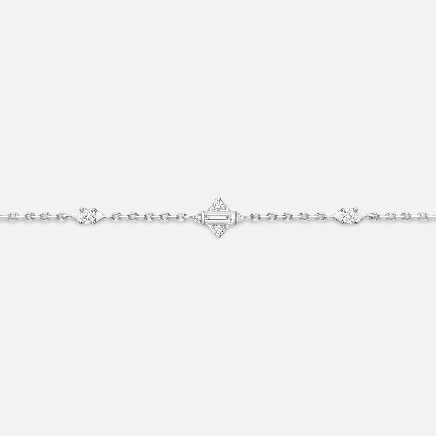 Les diamants baguette dessinent des trajectoires nettes, les brillants en rythment l’énergie.