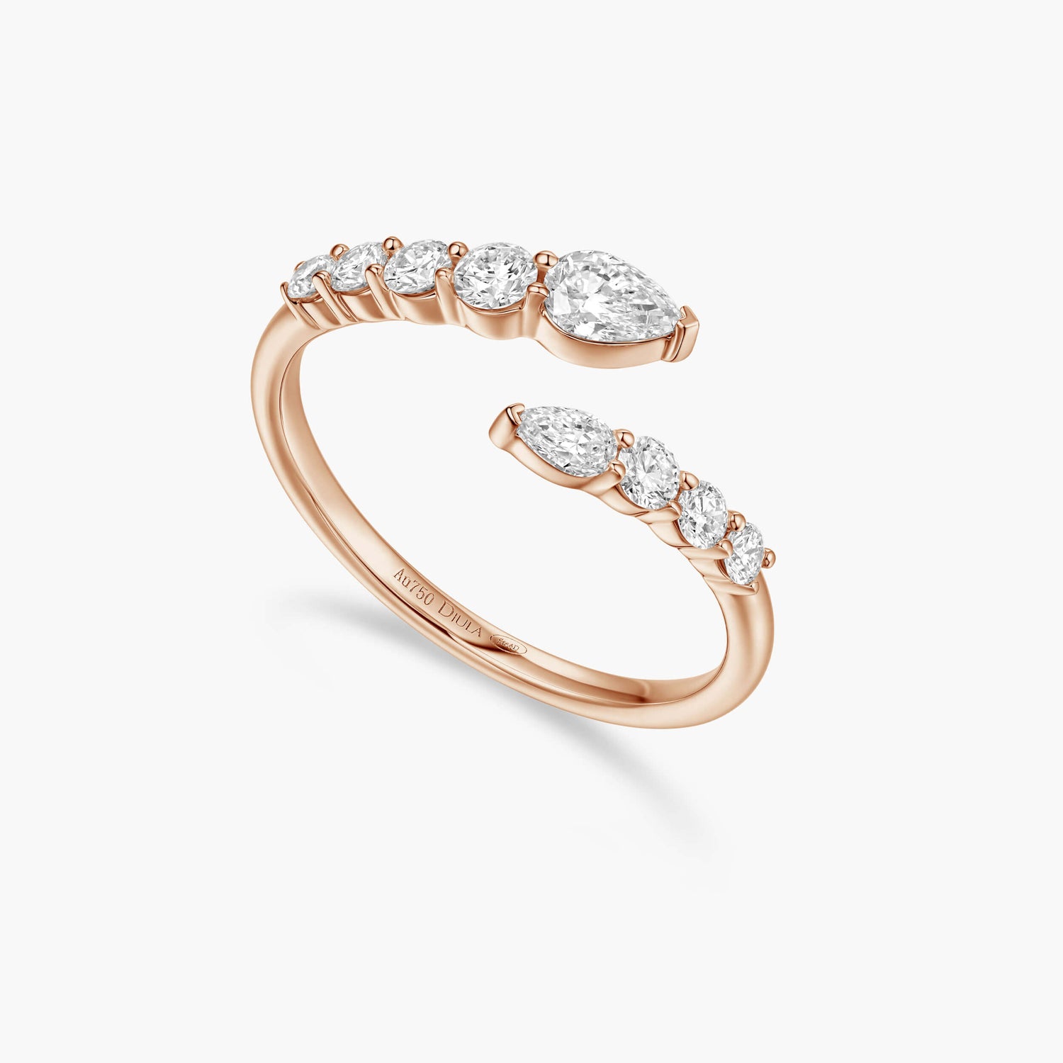 Monture : serti griffes avec diamants taille poire et taille ronde